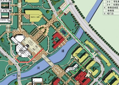 教职工车辆请从方舟东路过桥至文理楼(图中绿线标示)。