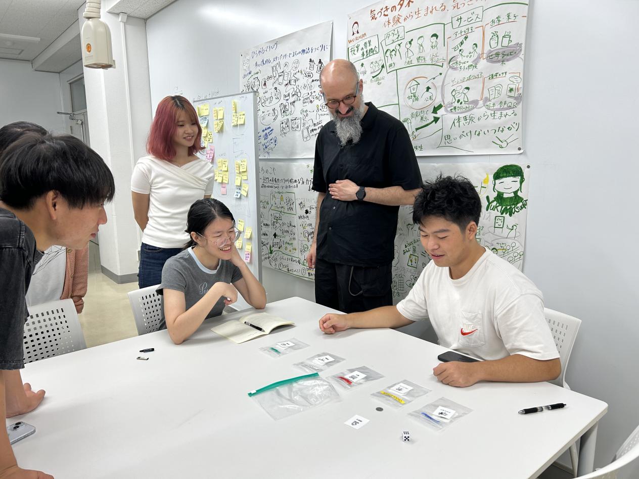 访问首站,代表团受到山口大学国际综合科学部的热烈欢迎。该部部长上田真寿美教授与中方师生就深化两校合作进行了深入交流。访问期间,我校带队教师张婷副教授应邀作了题为《现代中国设计的历史》的学术讲座,系统阐述了中国设计的发展脉络与前沿趋势,并重点介绍了我校在AI赋能教学方面的改革实践,中方学生也在现场展示了AI融入设计课堂的具体案例,彰显了我校在教学创新与人才培养方面的前沿探索。双方学生还围绕“如何提升在日交换生找寻工作积极性”这一合作课题进行了多次小组研讨,共同完成了用户画像分析、流程梳理等关键环节,为课题的最终汇报奠定了坚实基础。