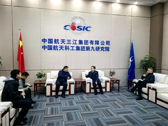 12月4-5日,党委书记鲁雄刚、副院长王志恒带队赴湖北武汉中国航天科工集团第九研究院调研,研究院副院长武春风,九院激光院党委书记、董事长吴明热情接待了学校调研团一行。