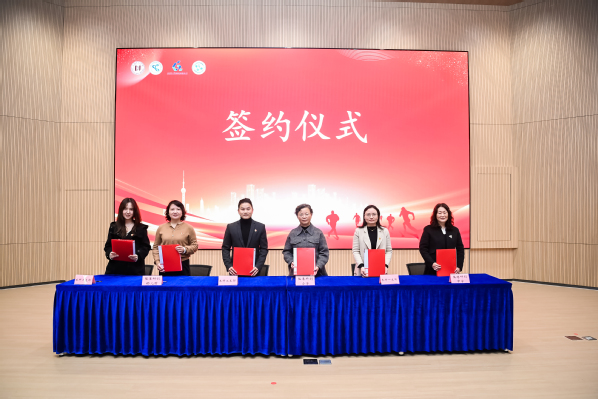 商学院的三个学生党支部书记,与临港各中小幼学校的校长或代表,共同签署支部共建协议。
