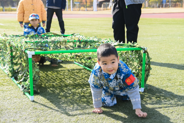 在图书馆报告厅,我校退役士兵窦凯祥等三名同学为临港科创中学的同学们开讲“国防教育第一课”,他结合亲身军旅生涯,分享新时代国防的内涵。与此同时,在体育场上,另一场别开生面的“国防教育活动打卡”正在热火朝天地进行,我校退役士兵代表盛磊带领着小学生们和幼儿园的孩子们,通过趣味互动和任务挑战,在他们心中播下了爱国与纪律的第一颗种子。两个分会场,两种深度,共同将一体化育人的理念,转化为不同年龄段学子可感、可知的生动实践。