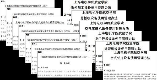 立足学院发展实际,实验中心聚焦实验室与资产管理关键环节,牵头编制“航空学院固定资产管理办法”“实验室安全准入制度”“风险防控预案”“特种设备使用管理办法”等11项(试行)管理制度初稿,修订“航空学院采购管理办法(试行)”1项。针对激光加工设备、空气压缩机、剪板机、龙门行吊等重点设备,专项制定安全操作规程和使用管理办法12项,构建起覆盖设备管理、安全防控、采购使用等全流程的制度框架。相关规章制度将提交学院党政联席会审议修订后正式施行,为提升实验室与资产管理能效、规范办学秩序提供坚实制度支撑。