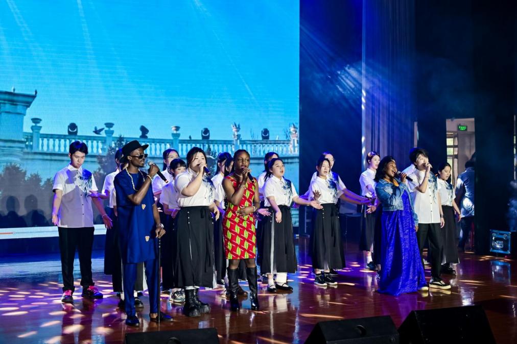 随后,《灯火里的中国》温暖唱响,留学生服饰走秀《华风沐四海·衣韵汇五洲》惊艳亮相,中华华服典雅与世界各国民族服饰绚丽交相辉映,生动诠释“各美其美、美美与共”的包容共生理念。最后,全体中外师生共同唱响《We Are the World》,不同语言的歌声汇聚在一起,传递着“天下一家”的美好愿景,将整场活动的氛围推向最高潮。