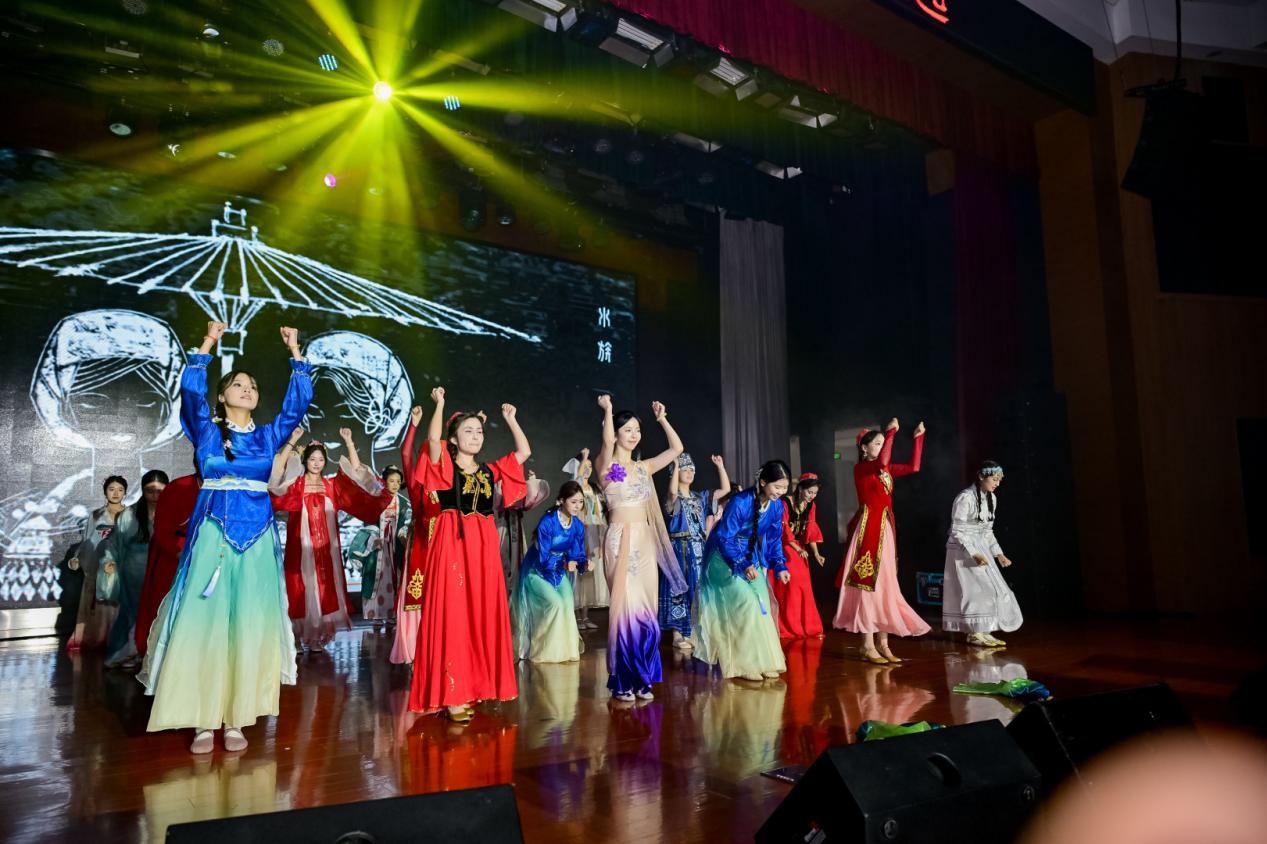 古典舞《踏歌》重现了古代踏歌而行的浪漫,学子们带来的歌咏创意秀《盛世花朝·文诵千年》让千年文脉在声线中流转,民族舞串烧《聚是一团火 中华一家亲》则用多民族的热情灵动舞姿,展现了中华大家庭的多元包容与温暖。