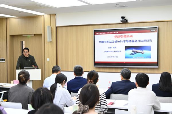 在学术交流环节,两院教师分享前沿科研成果。航空学院张军晖老师围绕增材制造陶瓷复合材料展开分享,介绍复合型3D打印工艺与材料结构优化方案,其研究有效提升航空材料抗损伤、轻量化与多功能性能,为空天航空零部件研发提供技术支撑。材料学院金敏教授以党建赋能科研为切入点,分享中国空间站InSe半导体晶体攻关成果,该成果大幅提升器件性能,兼具基础研究价值与多领域转化潜力,彰显了战略科研平台的赋能作用。