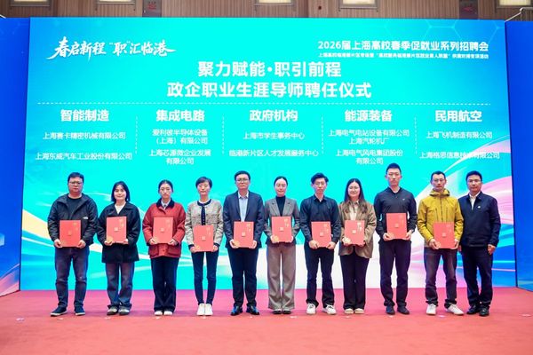 与此同时,一批聚焦学校发展重点关注的智能制造、集成电路、能源装备、民用航空四大领域的政企职业生涯导师接过聘书。这些导师来自政府相关部门及行业龙头企业,他们将不再是简单的面试官,而是学生职业生涯的“陪跑者”——从政策解读到行业认知,从简历打磨到面试实战模拟,为学子提供全方位、深层次的个性化指导,助力学生精准对接临港新片区重点产业需求。