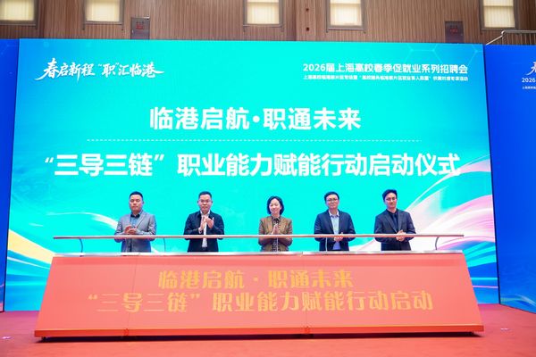 就业育人,归根结底是“育人”。面对部分毕业生在求职中的迷茫与“内耗”等问题,本次活动上,“临港启航·职通未来——‘三导三链’职业能力赋能行动”正式启动。试图从根源上解决学生“慢就业、懒就业”的症结。“‘三导三链’不仅是方法论,更是育人哲学的革新。”上海电机学院就业负责人刘国军解释,通过“导价值、导素养、导归属”,串联起“思政-引领链、知行-培养链、产教-发展链”的育人路径,三大链条环环相扣,精准锚定学生成长的自主驱动力、胜任驱动力与归属驱动力,真正激活学生的内在成长动能。